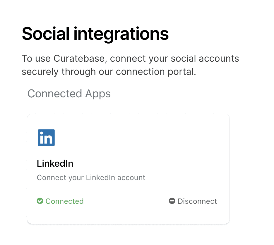 - Navigate to the "Social Networks" option in the Settings menu, or click the LinkedIn Icon in the Menu Bar.